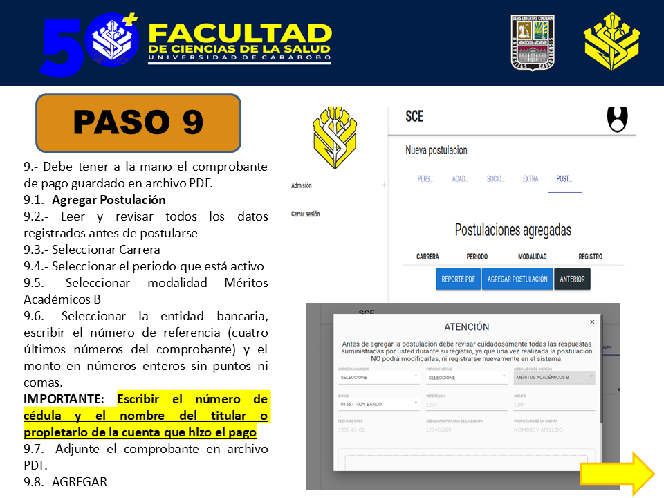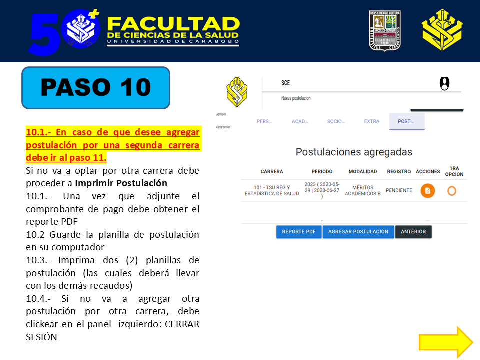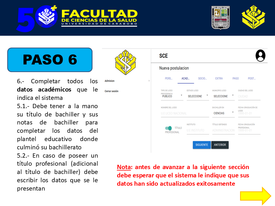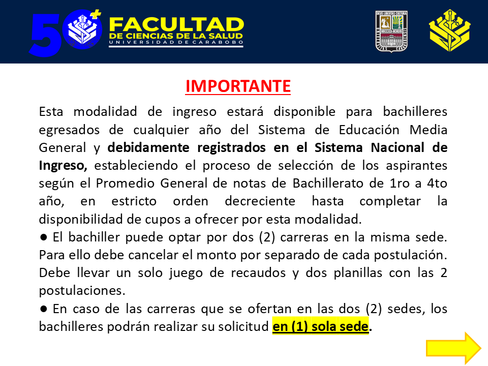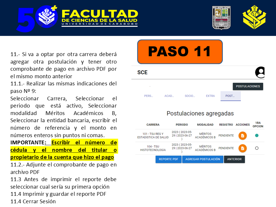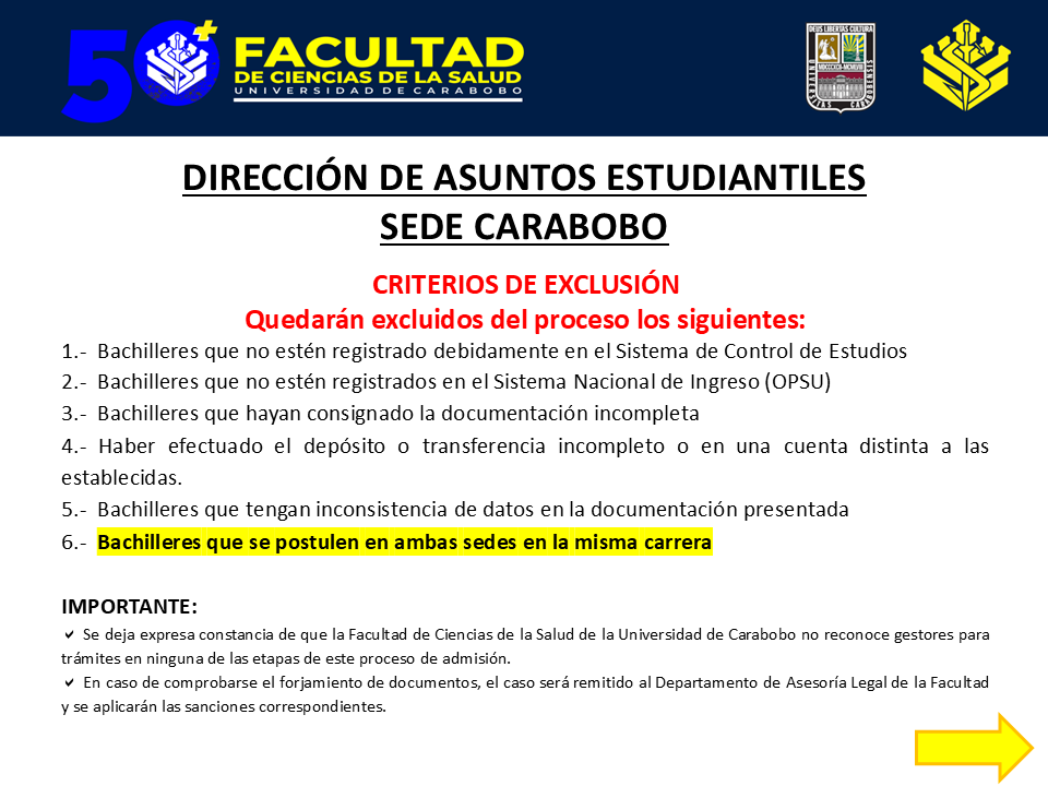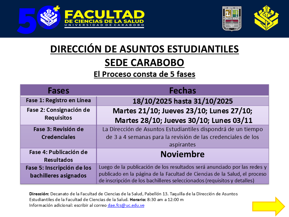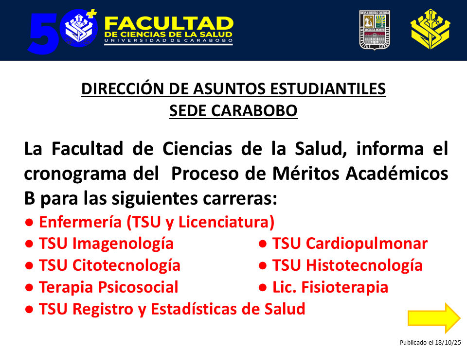 DAE Sede Carabobo: Proceso de Méritos Académicos B para las carreras técnicas, Enfermería y Fisioterapia