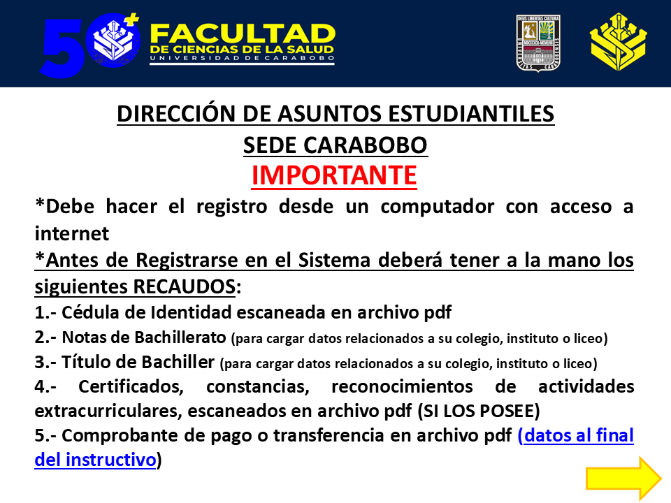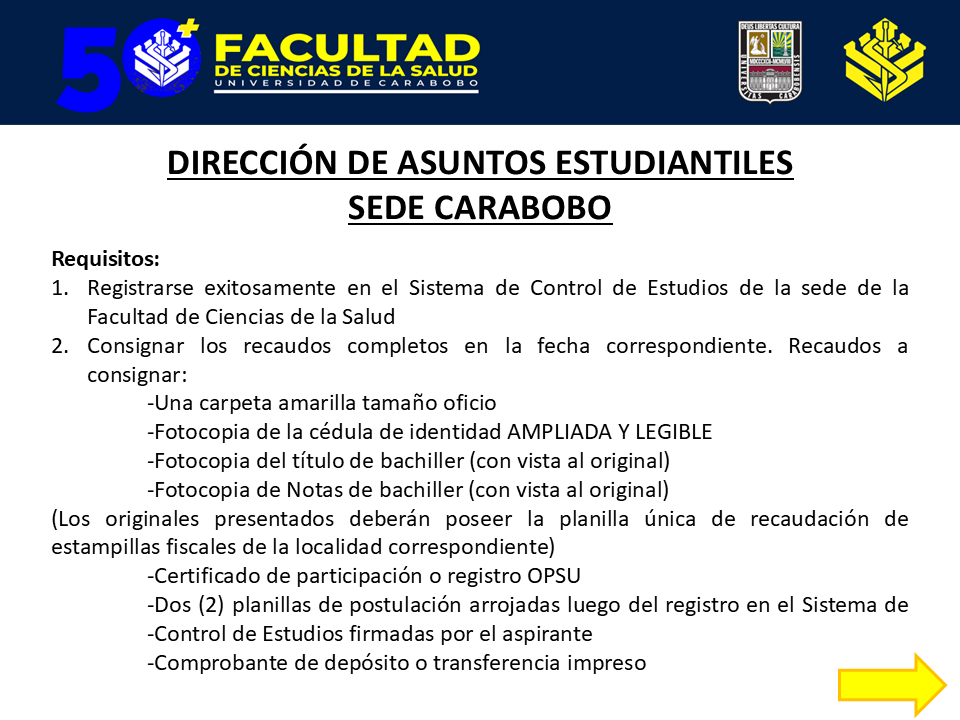 DAE Sede Carabobo: Solicitud de ingreso por Convenio Gremial a las carreras técnicas, Enfermería y Fisioterapia
