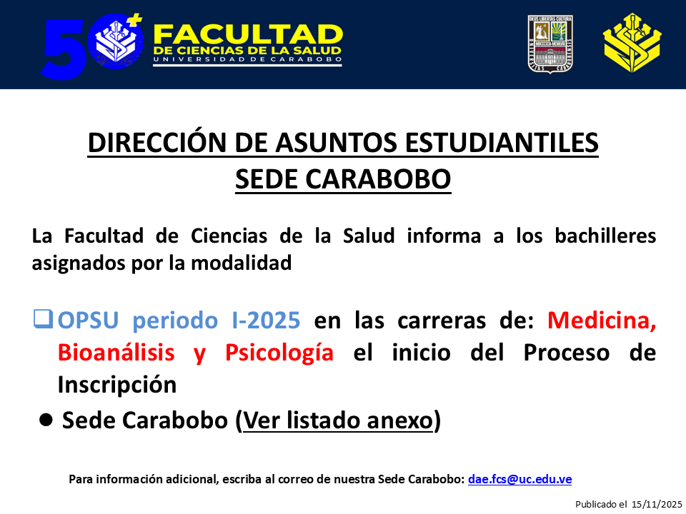 DAE Sede Carabobo: Proceso de Inscripción de bachilleres asignados por OPSU 2025 en las carreras de Medicina, Bioanálisis y Psicología