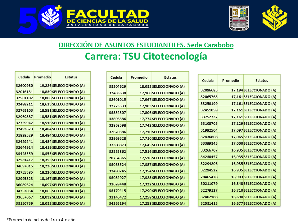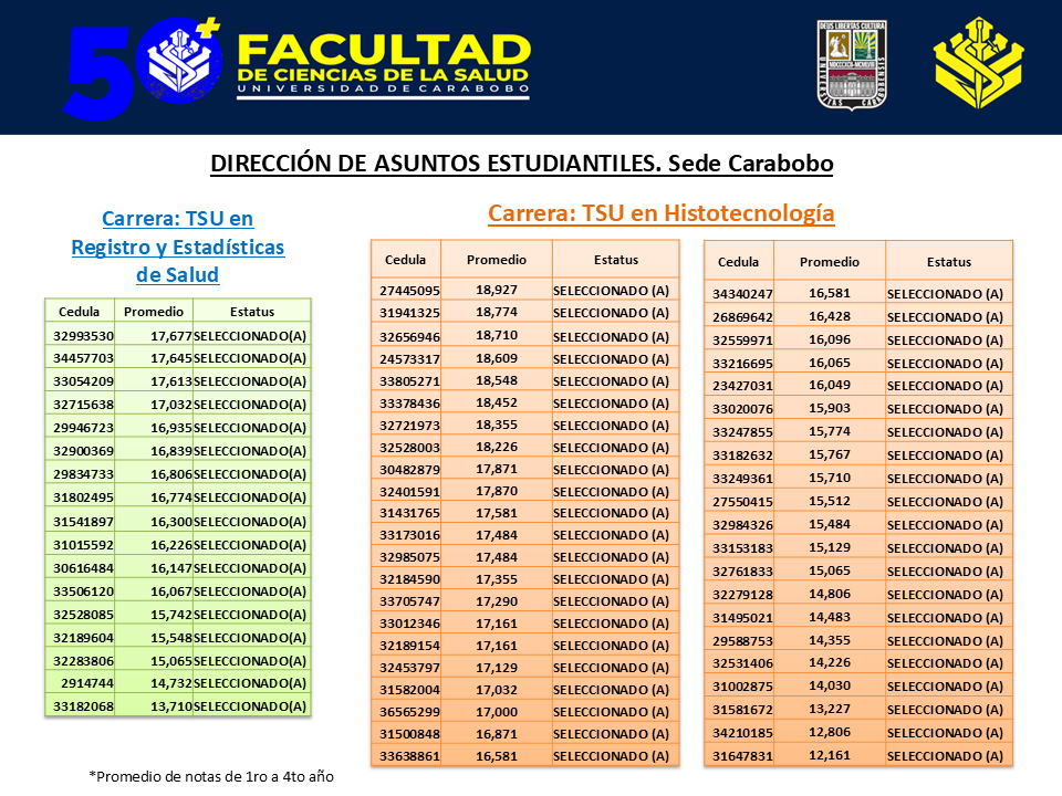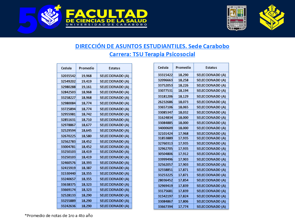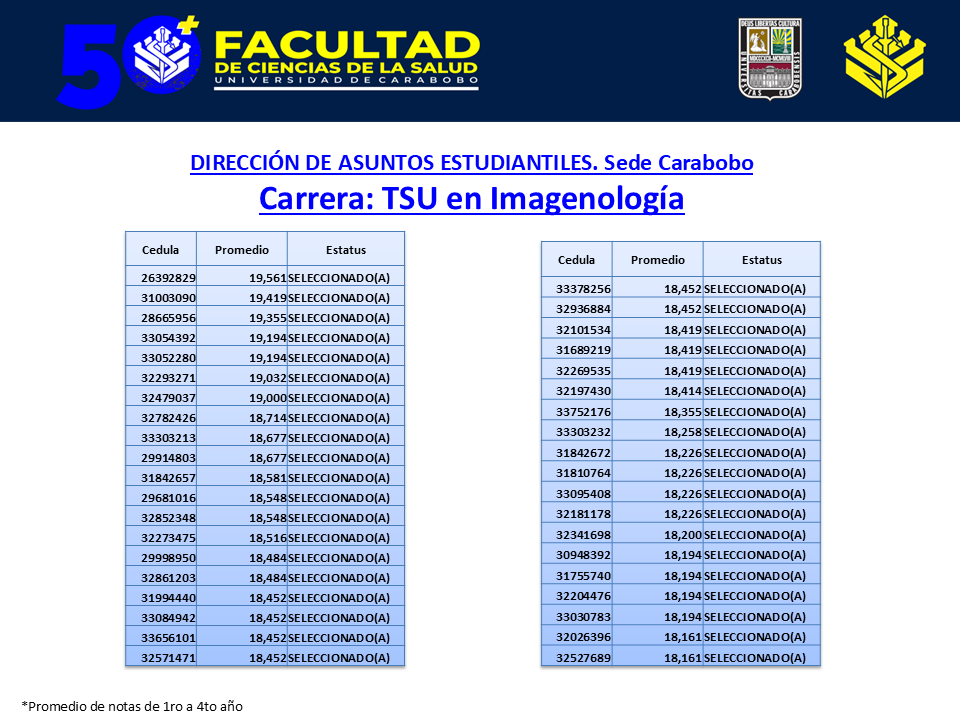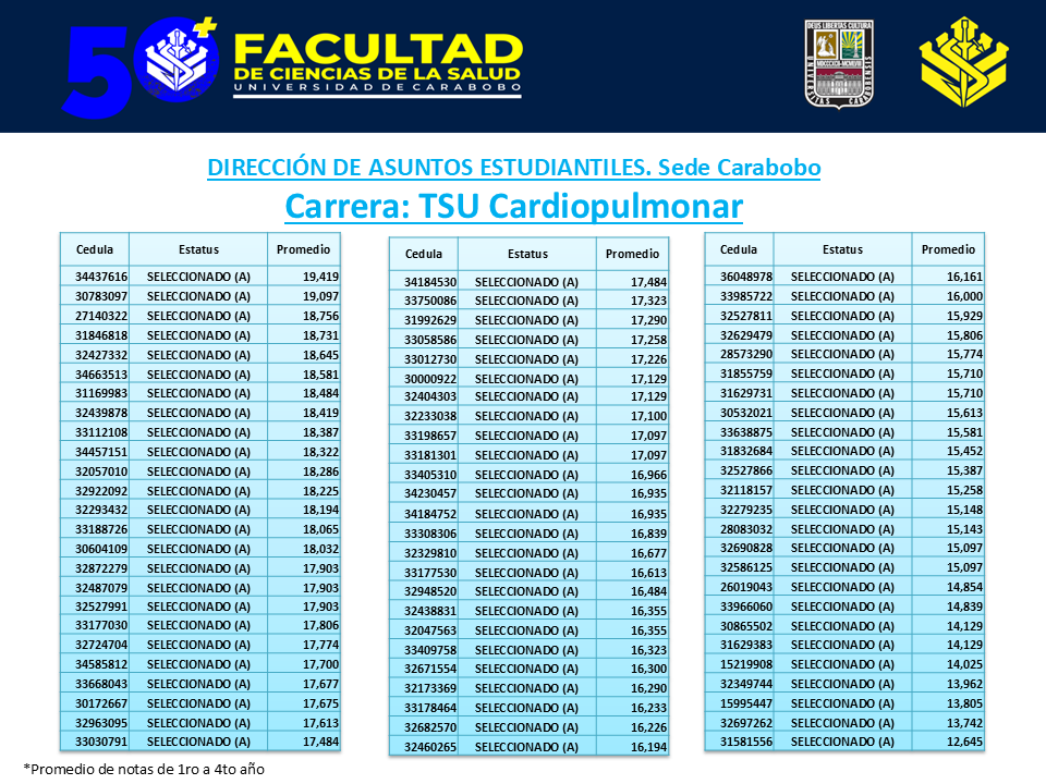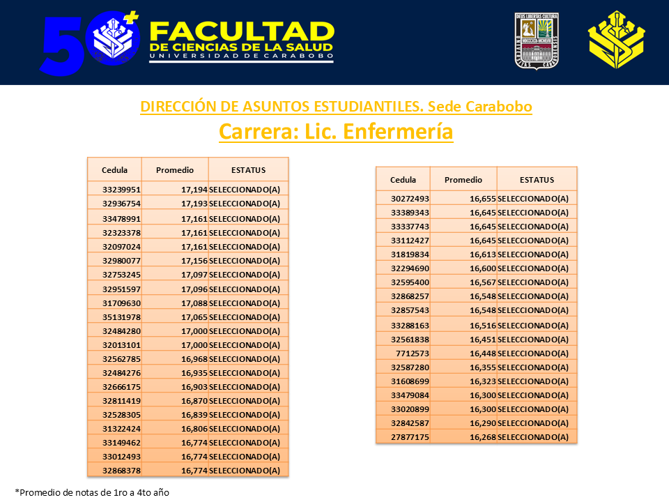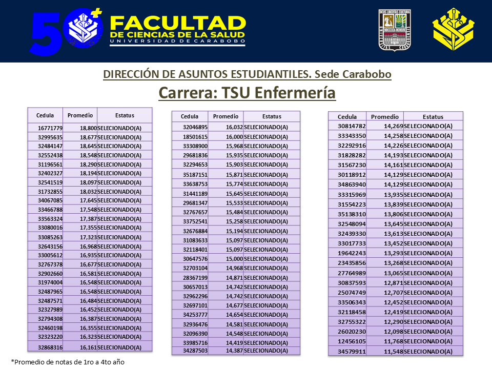 DAE Sede Carabobo: Inscripción de asignados por Méritos Académicos B para las carreras técnicas, Enfermería y Fisioterapia